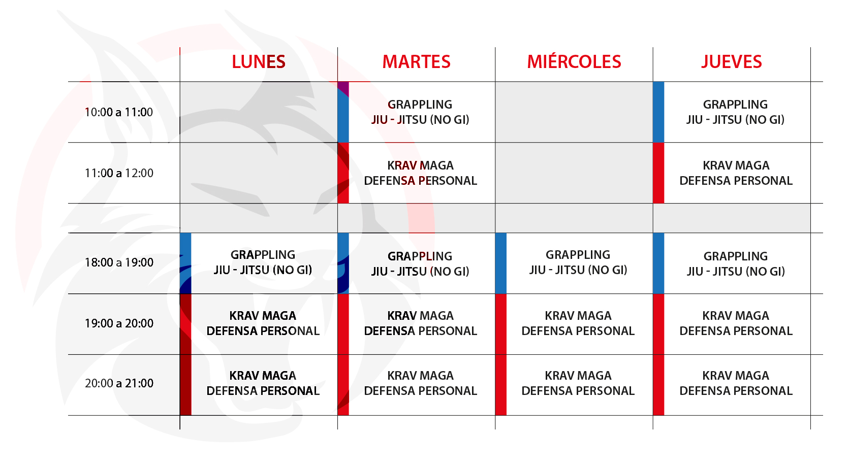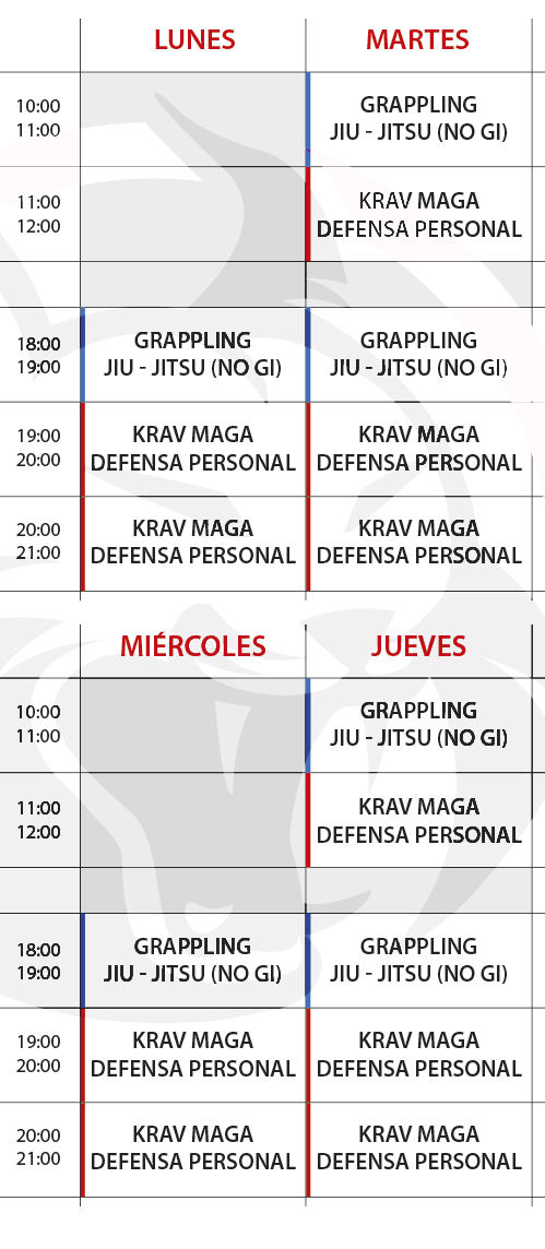 Lynx krav maga, Horarios de clases
